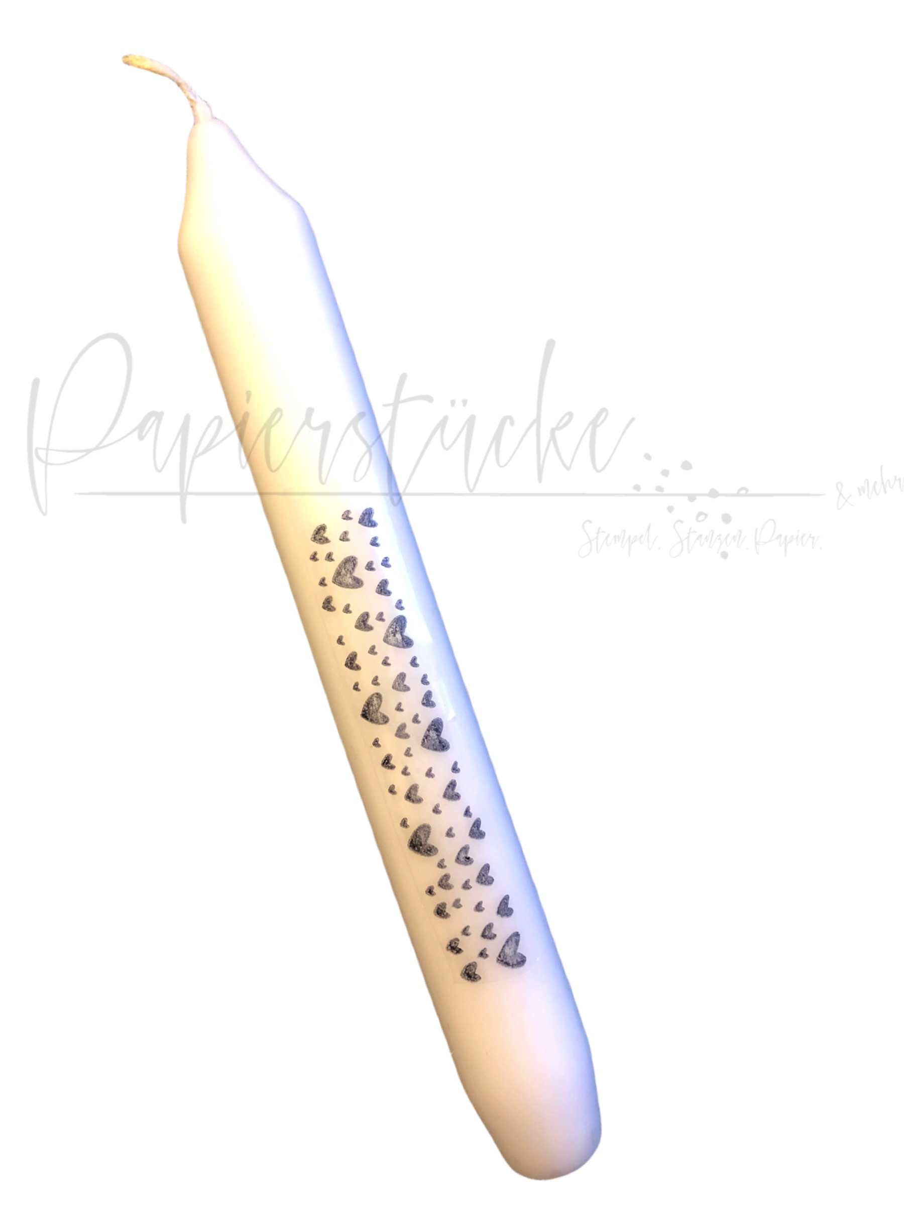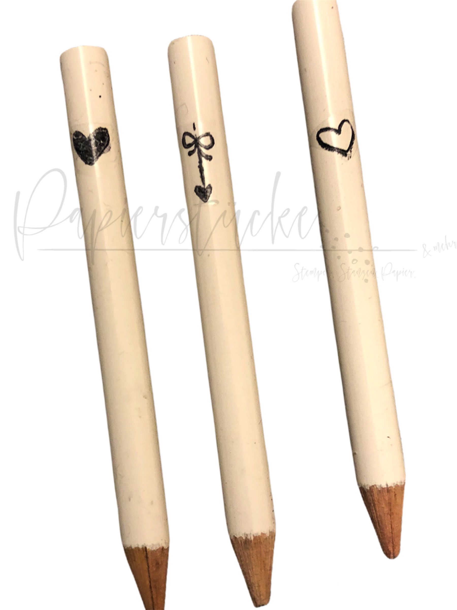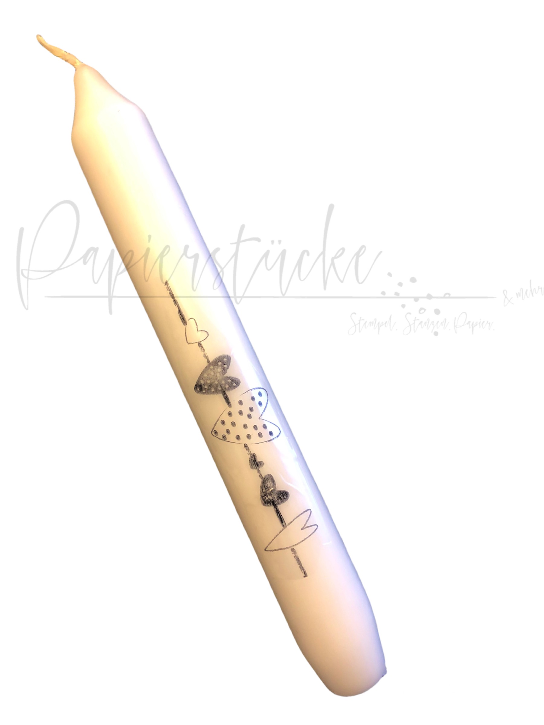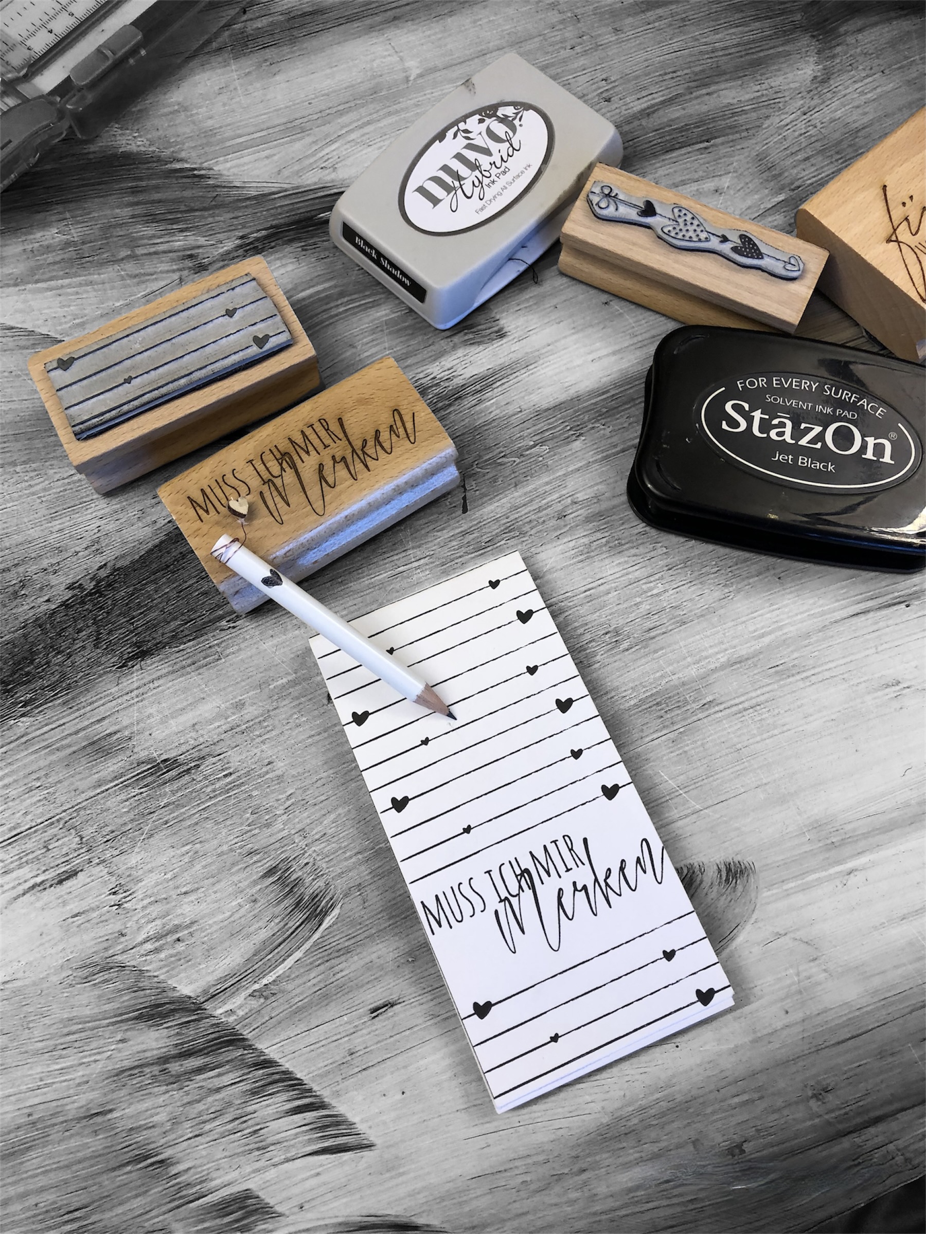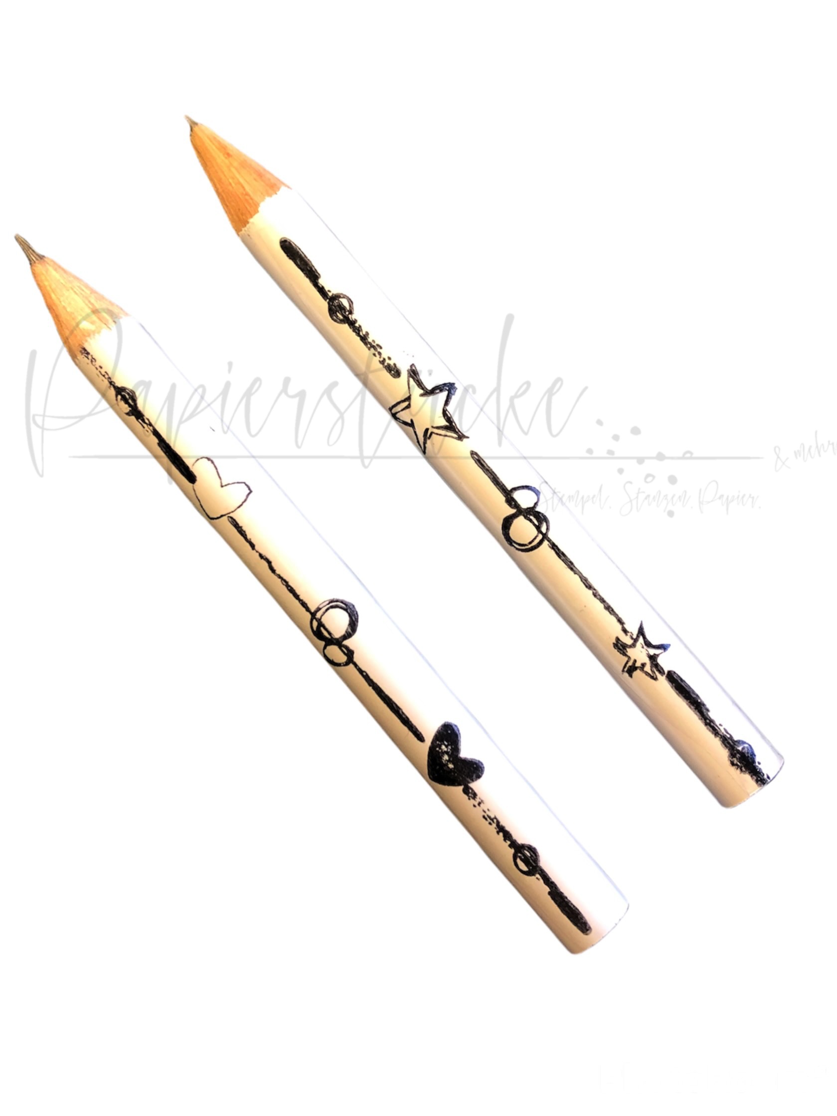 Aber damit nicht genug hab ich dann auch noch die Kellnerblöcke aus dem Regal geholt, weil ich vor lauter Wasserschiebestempeln ja dann unbedingt auch noch die neuen kleinen süßen weißen Bleistifte testen wollte. Und schwupps ist eine ganze “Herzchen-Designlinie” entstanden. Alle neuen Stempel passen entweder auf die Kerzen oder auf die kleinen Bleistifte 🙈 “Watt mutt dat mutt” hat Omma immer gesagt oder?